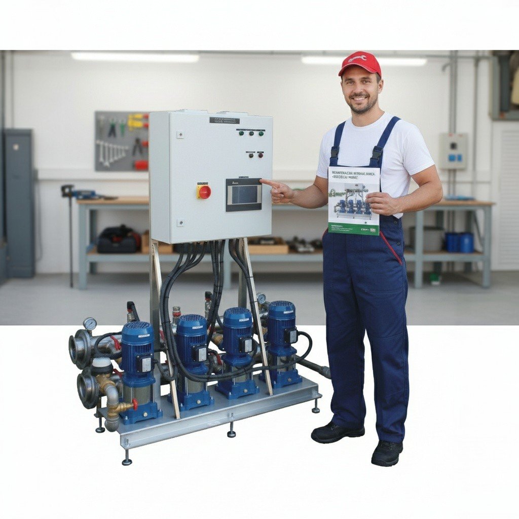 Zestaw ZHU zawiera szafę zasilająco-sterującą, presostaty, manometry, przetwornik ciśnienia, zawory zwrotne i kulowe, zbiornik wyrównawczy oraz zawór spustowy. Całość zamontowana jest na sztywnej ramie ze stali kwasoodpornej z amortyzatorami drgań. To kompleksowe rozwiązanie zapewnia pełną kontrolę nad pracą systemu i łatwość w utrzymaniu.